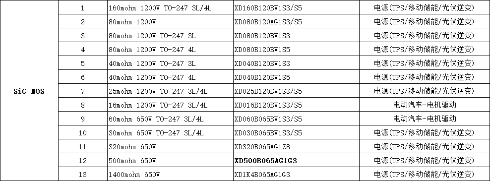 XD500B065AG1G3   SiC MOS   500mohm 650V  電源(UPS/移動儲能/光伏逆變)