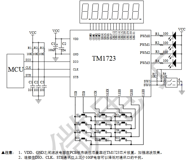 TM1723是一種帶鍵盤掃描接口的LCD驅(qū)動控制專用電路,內(nèi)部集成有MCU 數(shù)字接口、數(shù)據(jù)鎖存器、LCD
