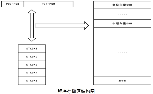 XC8P9527的程序存儲區采用哈佛架構,數據總線和地址總線相互獨立,這種架構大大提高了數據存儲和處理的效率。具體結構如下: