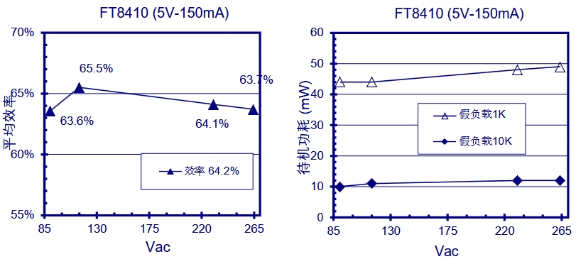 FT84xx系列芯片在效率方面表現出色。以FT8410為例,在不同輸入電壓下,其效率均能達到60%以上,最高可達70%。這種高效率意味著在將交流電轉換為直流電的過程中,能量損失極小,能夠有效減少能源浪費,降低設備的運行成本。同時,該芯片的功耗極低,僅為10 - 50mW,這一特性使其在待機狀態(tài)下幾乎不消耗能量,極大地延長了設備的使用壽命。