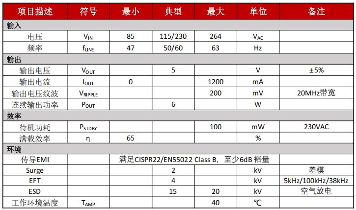 • 待機功耗(P_STDBY):最大100mW(230VAC),符合節能標準。