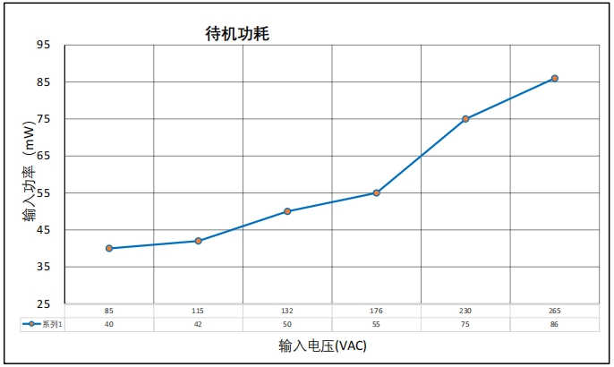 從圖中可以看出,BP86513D在不同輸入電壓下的待機功耗均低于100mW,符合節能標準。