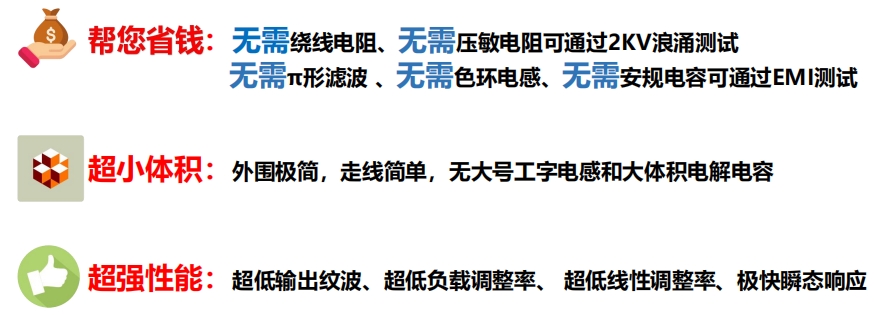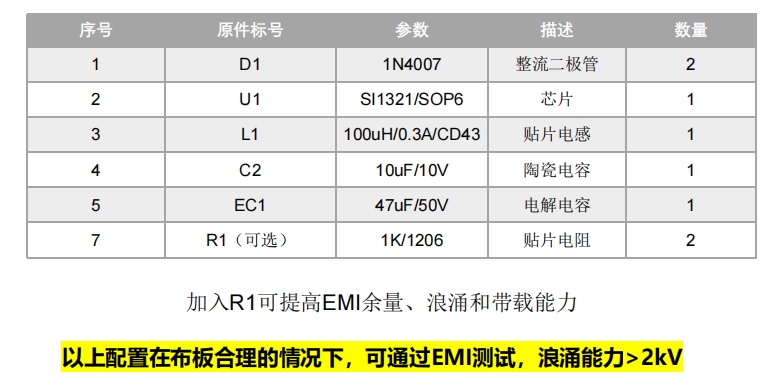 SI1321X系列無需繞線電阻、壓敏電阻,即可通過2KV浪涌測試;無需π形濾波、色環(huán)電感、安規(guī)電容,也能輕松通過EMI測試。這種設(shè)計極大地簡化了電路設(shè)計,減少了元件數(shù)量,降低了成本,同時也提高了系統(tǒng)的可靠性和穩(wěn)定性。