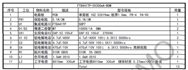 FT8441TP 是一款專為小家電輔助電源設(shè)計(jì)的高性能非隔離式開關(guān)電源芯片,能夠提供高精度、高效率的恒壓輸出。本文將詳細(xì)介紹基于 FT8441TP 的 5V300mA 電源芯片 DEMO 板的參考設(shè)計(jì),涵蓋其特點(diǎn)、電源規(guī)格、電路原理圖、PCB 布局以及物料清單等關(guān)鍵信息。