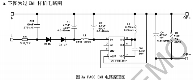 FT8441TP 的電路設(shè)計(jì)采用非隔離式 Buck 拓?fù)浣Y(jié)構(gòu),具有簡(jiǎn)單、高效的特點(diǎn)。其電路主要包括輸入整流濾波、開關(guān)控制、輸出整流濾波和反饋控制等部分。