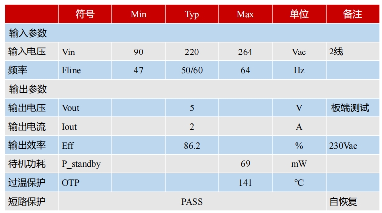 在不同輸入電壓下,S7134B芯片的待機(jī)功耗均低于75mW,滿足六級能效的待機(jī)功耗要求。具體數(shù)據(jù)如下表所示: