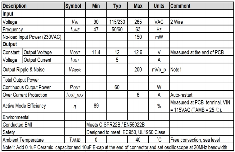 適配器在不同輸入電壓和負載條件下,均能提供穩定的12V輸出電壓。測試報告顯示,在90Vac/50Hz和264Vac/60Hz的輸入條件下,輸出電壓的波動范圍極小,保證了連接設備的穩定運行。