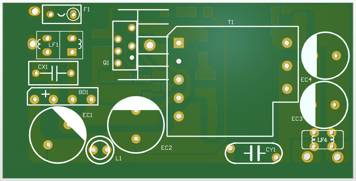“反激、非連續、谷底導通、125 kHz”四板斧,把24 V×2.5 A=60 W功率硬生生壓進PQ2620磁芯,成品尺寸42 mm×28 mm×22 mm,自然冷卻,成本<15 RMB(不含殼)。本文把官方只給圖片的“非標原理圖+變壓器手工繞單”一次性公開,并給出可復制的PCB布局、EMI調試與安規要點,供廣大電源同行“抄作業”。
