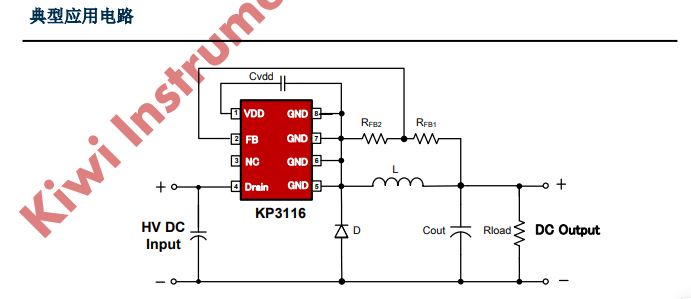 KP3116 是一款高性能低成本 PWM 控制功率開關(guān),適用于離線式小功率降壓型應(yīng)用場合,外圍電路簡單、器件個數(shù)少。同時產(chǎn)品內(nèi)置高耐壓 MOSFET 可提高系統(tǒng)浪涌耐受能力。