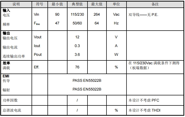 下表給出的是設計的最低可接受指標,實際性能在后續的測試結果部分給出。