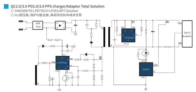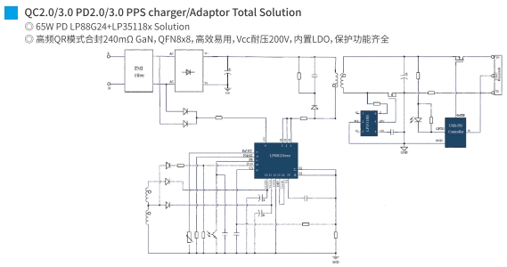 在現(xiàn)代電子設(shè)備中,快速充電技術(shù)已成為提升用戶體驗(yàn)的關(guān)鍵因素之一。65W PD(Power Delivery)快充方案,以其高效率、高兼容性和高安全性,成為眾多電子設(shè)備制造商的首選。本文將深入探討兩種主流的65W PD快充方案:LP8776CD+LP35116PT和LP88G24+LP35118X,分析它們的技術(shù)特點(diǎn)和應(yīng)用優(yōu)勢。